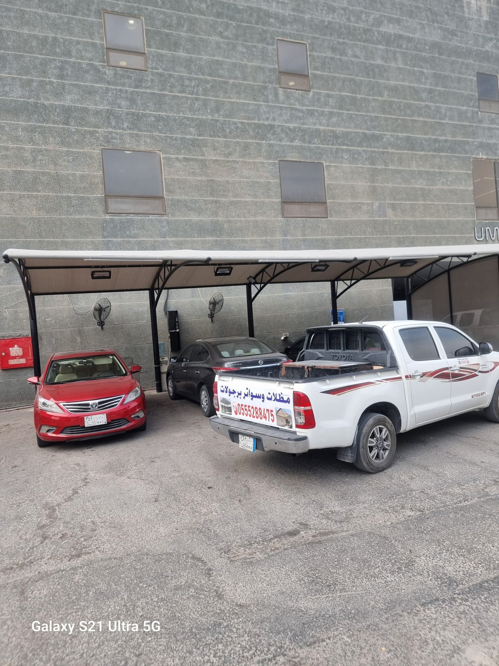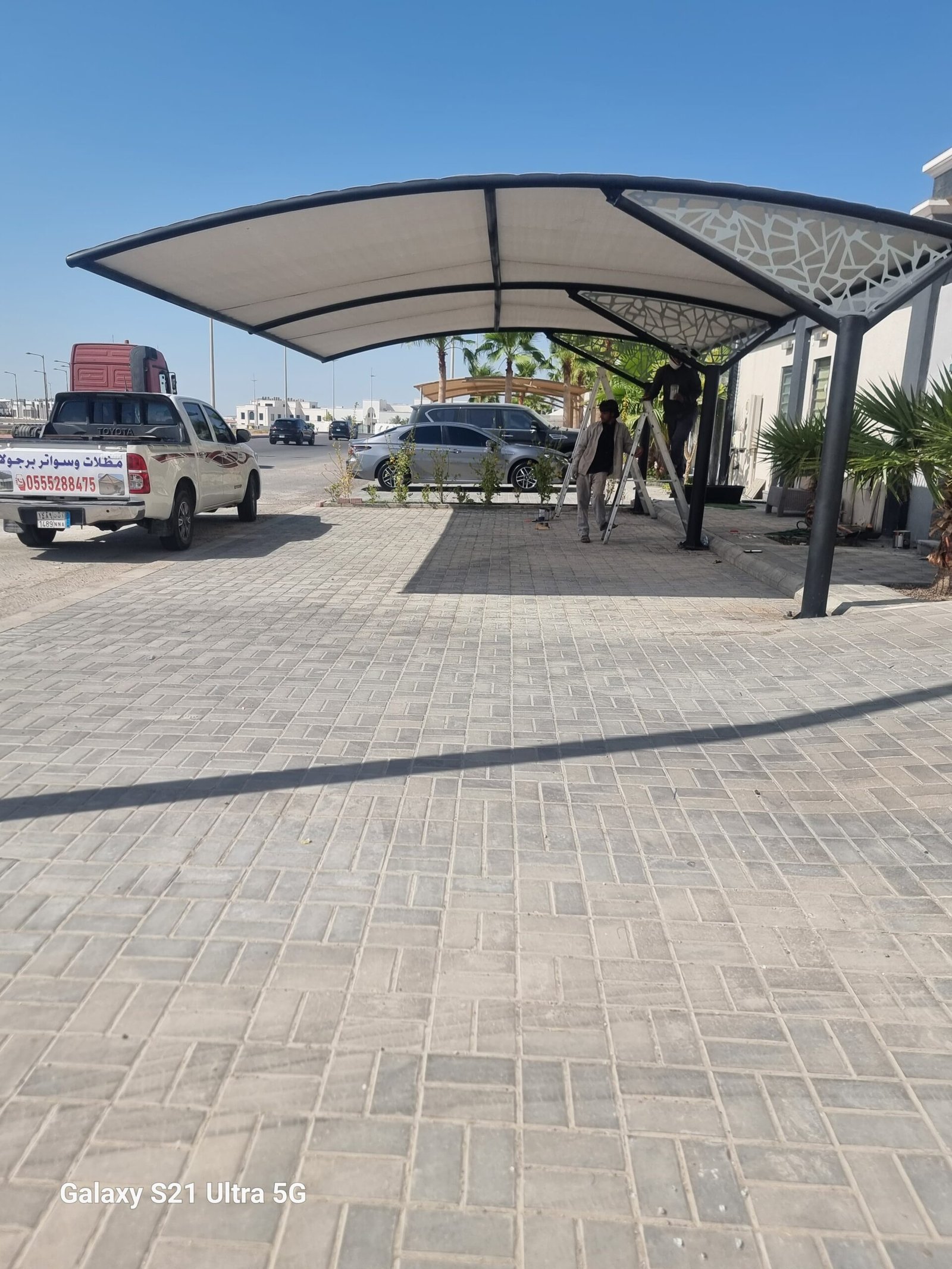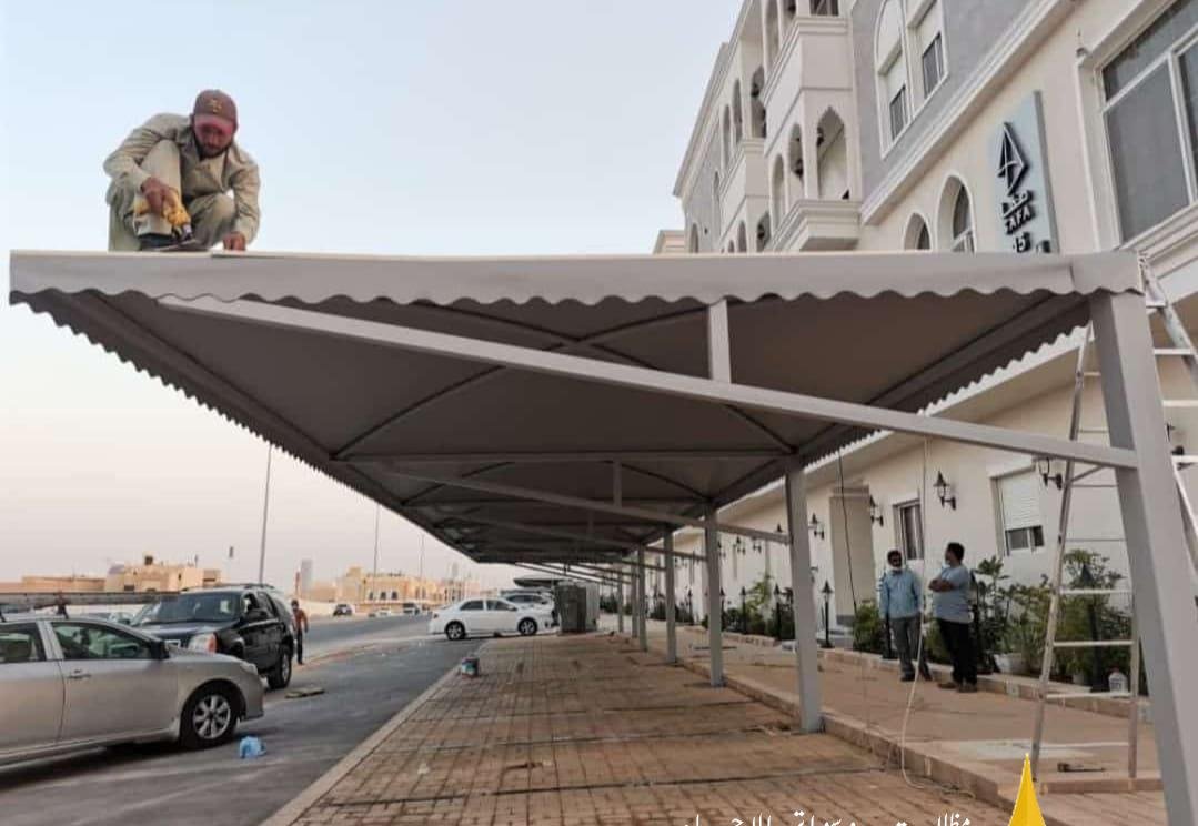 مظلات سيارات في الأحساء | تركيب مظلات كابولي ومواقف مشاريع بجودة عالية